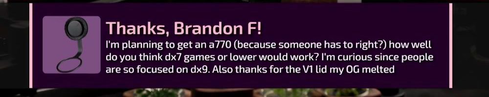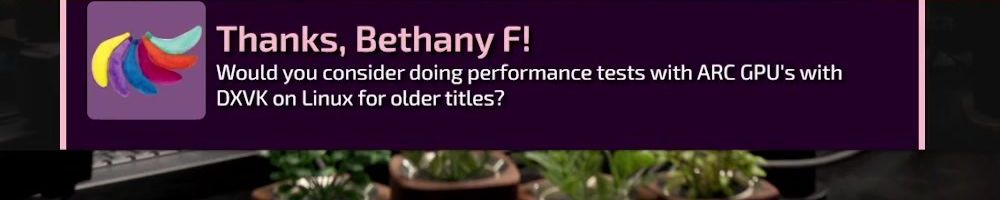 Thanks, Bethany F! Would you consider doing performance tests with ARC GPU's with DXVK on Linux for older titles?