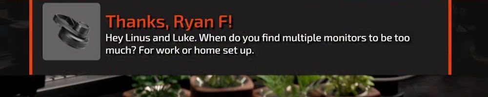 Thanks, Ryan F! Hey Linus and Luke. When do you find multiple monitors to be too much? For work or home set up.