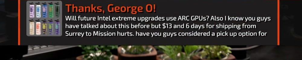 Thanks, George O! Will future Intel extreme upgrades use ARC GPUs? Also I know you guys have talked about this before but $13 and 6 days for shipping from Surrey to Mission hurts. have you guys considered a pick up option for