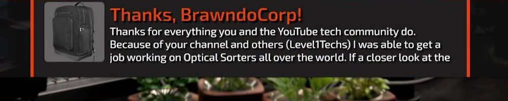 Thanks, BrawndoCorp! Thanks for everything you and the YouTube tech community do. Because of your channel and others (Level1Techs) I was able to get a job working on Optical Sorters all over the world. If a closer look at the