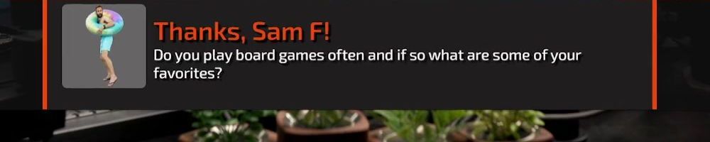 Thanks, Sam F! Do you play board games often and if so what are some of your favorites?