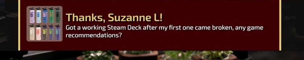 Thanks, Suzanne L! Got a working Steam Deck after my first one came broken, any game recommendations?