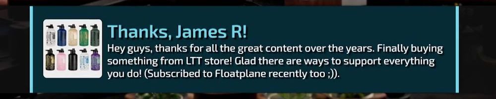 Thanks, James R! Hey guys, thanks for all the great content over the years. Finally buying something from LTT store! Glad there are ways to support everything you do! (Subscribed to Floatplane recently too ;)).