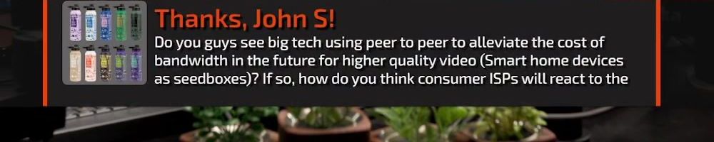 Thanks, John S! Do you guys see big tech using peer to peer to alleviate the cost of bandwidth in the future for higher quality video (Smart home devices as seedboxes)? If so, how do you think consumer ISPs will react to the