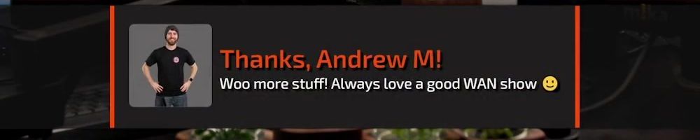 Thanks, Andrew M! Woo more stuff! Always love a good WAN show 😊