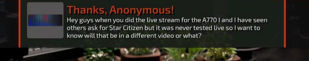 Thanks, Anonymous! Hey guys when you did the live stream for the A770 I and I have seen others ask for Star Citizen but it was never tested live so I want to know will that be in a different video or what?