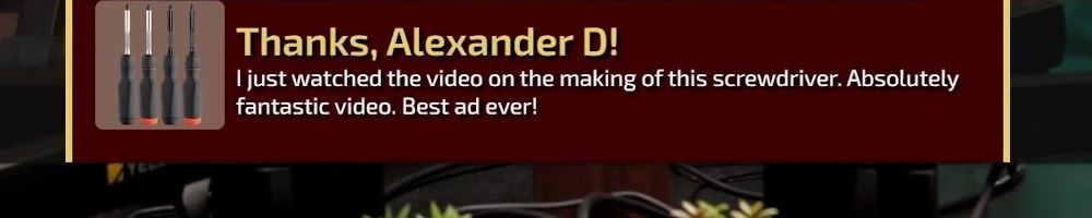 Thanks, Alexander D! I just watched the video on the making of this screwdriver. Absolutely fantastic video. Best ad ever!