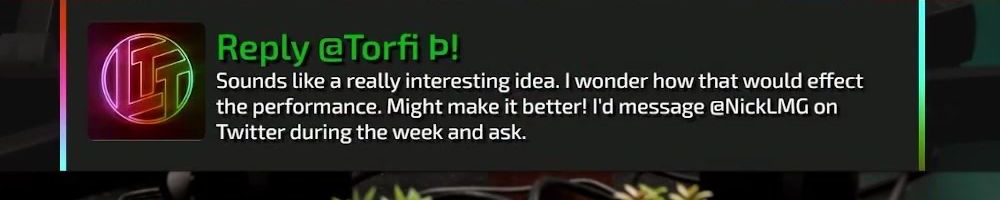 Reply @Torfi b! Sounds like a really interesting idea. I wonder how that would effect the performance. Might make it better! I'd message @NickLMG on Twitter during the week and ask.