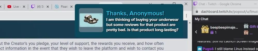 Hint: Use CTRL + F to search messages in this show, or use Whenplane's WAN Show Search tool to search for messages in all shows. Make sure that the "Merch Messages" box is checked when you search for something.