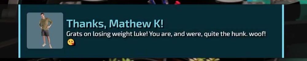Thanks, Mathew K! Grats on losing weight luke! You are, and were, quite the hunk. woof!