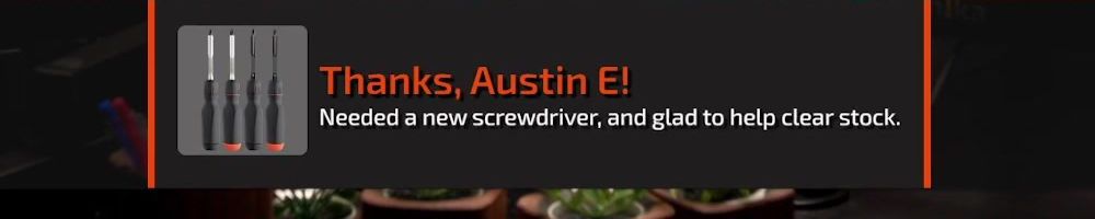 Thanks, Austin E! Needed a new screwdriver, and glad to help clear stock.
