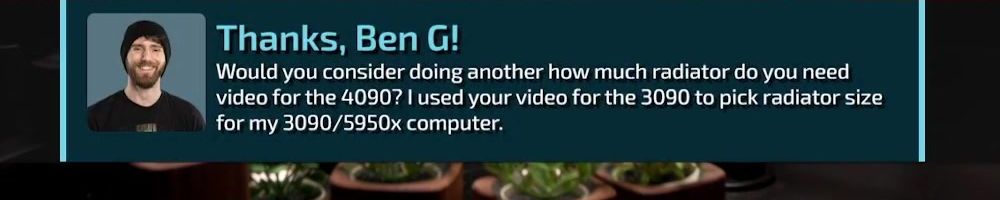 Thanks, Ben G! Would you consider doing another how much radiator do you need video for the 4090? I used your video for the 3090 to pick radiator size for my 3090/5950x computer.