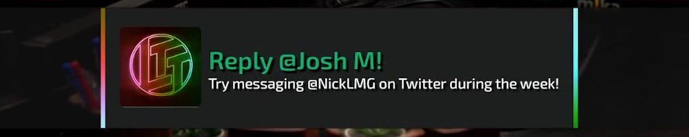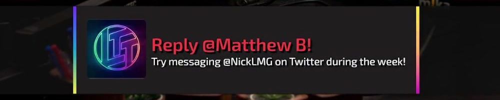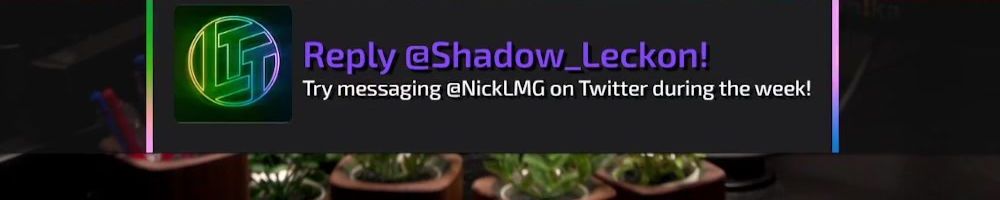 Reply @Shadow_Leckon! Try messaging @NickLMG on Twitter during the week!