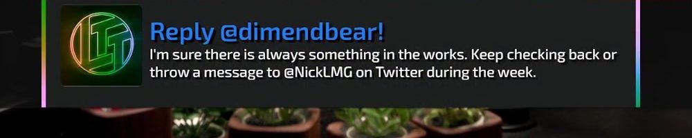 Reply @dimendbear! I'm sure there is always something in the works. Keep checking back or throw a message to @NickLMG on Twitter during the week.