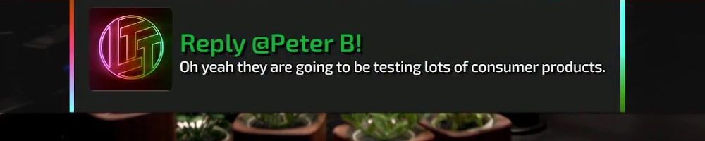 Reply @Peter B! Oh yeah they are going to be testing lots of consumer products.