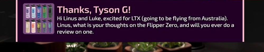 Thanks, Tyson G! Hi Linus and Luke, excited for LTX (going to be flying from Australia). Linus, what is your thoughts on the Flipper Zero, and will you ever do a review on one.