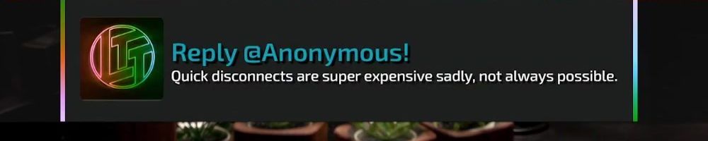 Reply @Anonymous! Quick disconnects are super expensive sadly, not always possible.