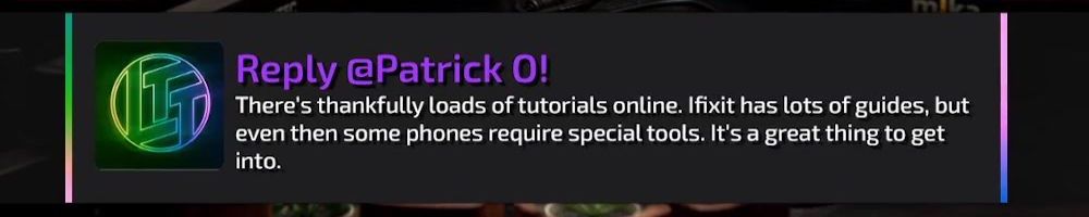 Reply @Patrick O! There's thankfully loads of tutorials online. Ifixit has lots of guides, but even then some phones require special tools. It's a great thing to get into.
