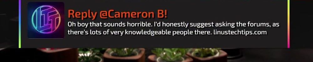 Reply @Cameron B! Oh boy that sounds horrible. I'd honestly suggest asking the forums, as there's lots of very knowledgeable people there. linustechtips.com