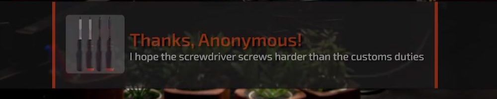 Thanks, Anonymous! I hope the screwdriver screws harder than the customs duties