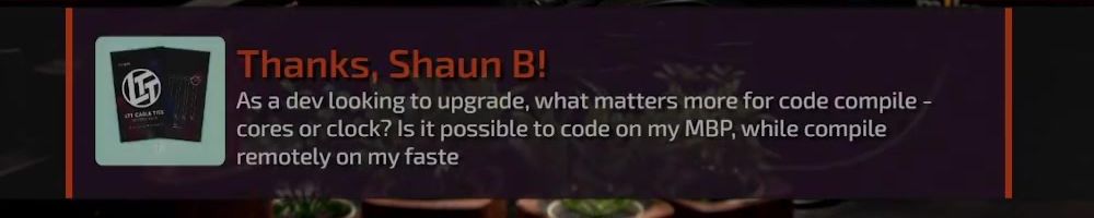 Thanks, Shaun B! As a dev looking to upgrade, what matters more for code compile - cores or clock? Is it possible to code on my MBP, while compile remotely on my faste