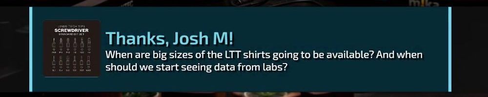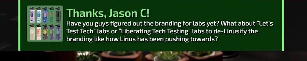 Thanks, Jason C! Have you guys figured out the branding for labs yet? What about “Let's Test Tech” labs or “Liberating Tech Testing" labs to de-Linusify the branding like how Linus has been pushing towards?