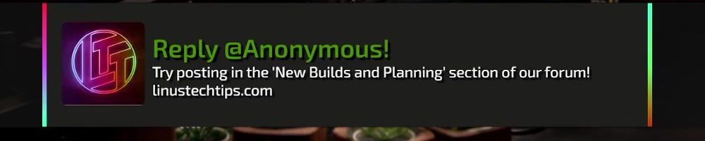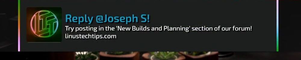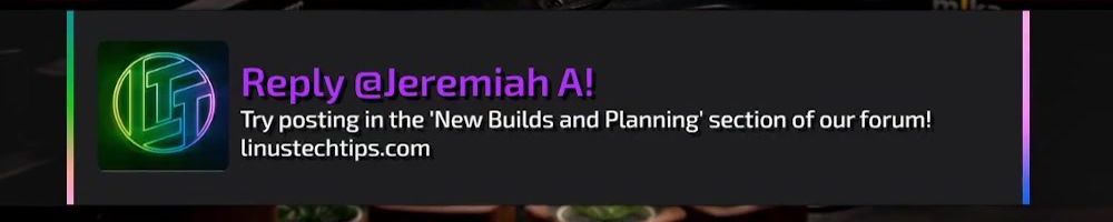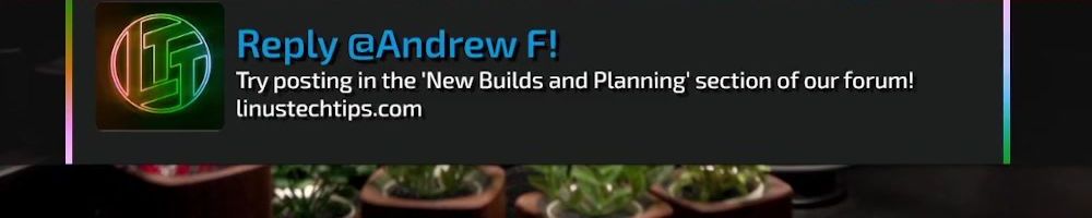 Reply @Jeremiah A! Try posting in the 'New Builds and Planning’ section of our forum! linustechtips.com