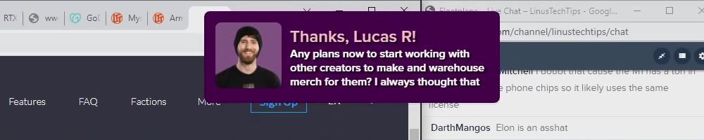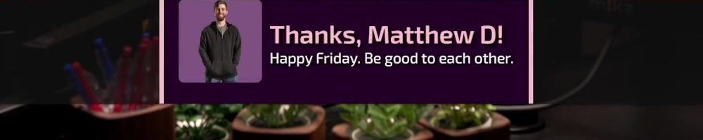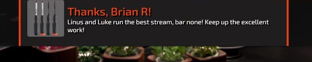 Thanks, Brian R! Linus and Luke run the best stream, bar none! Keep up the excellent work!