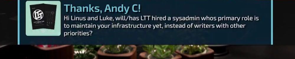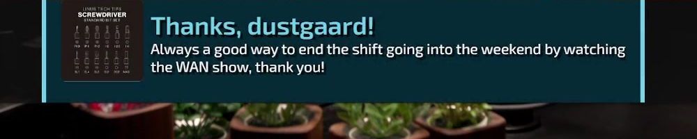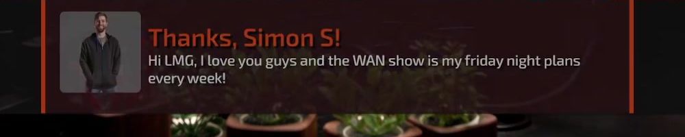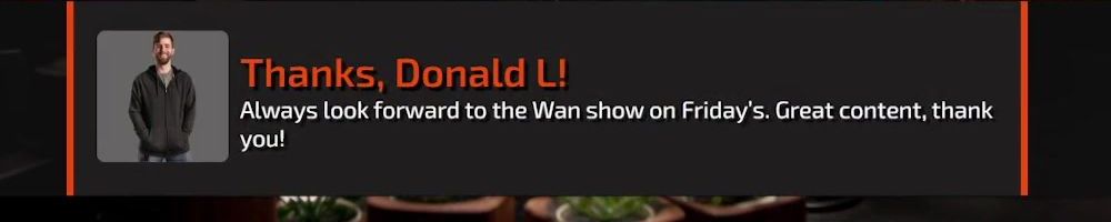Thanks, Donald L! Always look forward to the Wan show on Friday's. Great content, thank you!