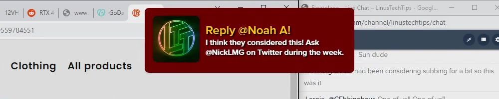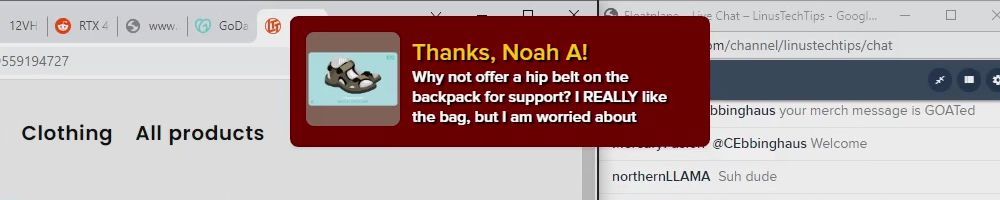 Hint: Use CTRL + F to search messages in this show, or use Whenplane's WAN Show Search tool to search for messages in all shows. Make sure that the "Merch Messages" box is checked when you search for something.