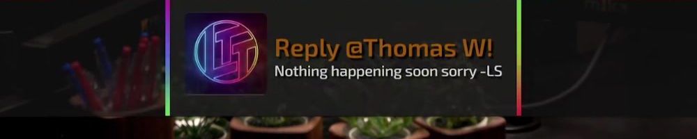 Reply @Thomas W! Nothing happening soon sorry -LS
