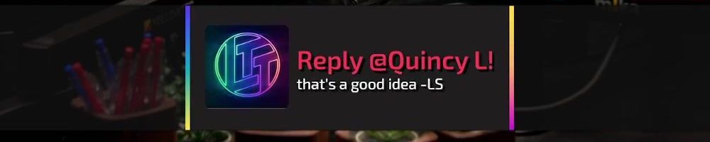 Reply @Christopher G! that's a cool idea -LS
