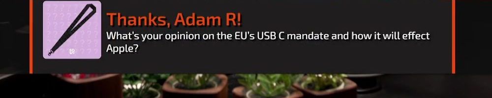 Thanks, Adam R! What's your opinion on the EU's USB C mandate and how it will effect Apple?