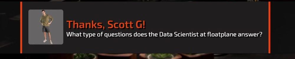 Thanks, Scott G! What type of questions does the Data Scientist at floatplane answer?