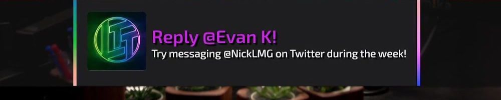 Reply @Evan K! Try messaging @NickLMG on Twitter during the week!