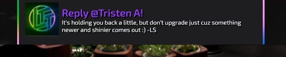 Reply @Tristen A! It's holding you back a little, but don't upgrade just cuz something newer and shinier comes out :) -LS