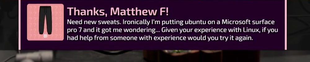 Need new sweats. Ironically I'm putting ubuntu on a Microsoft surface pro 7 and it got me wondering... Given your experience with Linux, if you had help from someone with experience would you try it again.