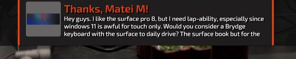 Hey guys. I like the surface pro 8, but I need lap-ability, especially since windows 11 is awful for touch only. Would you consider a Brydge keyboard with the surface to daily drive? The surface book but for the