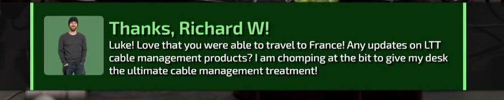 Luke! Love that you were able to travel to France! Any updates on LTT cable management products? I am chomping at the bit to give my desk the ultimate cable management treatment!