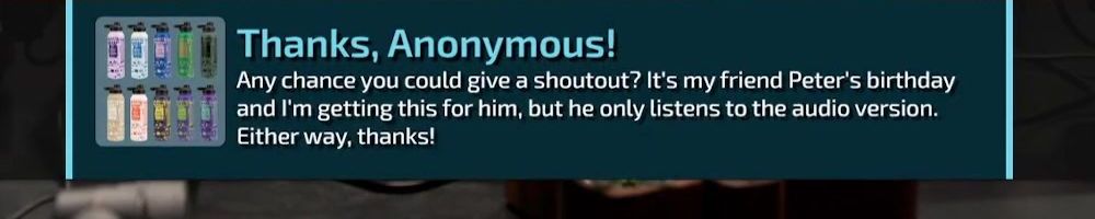 Any chance you could give a shoutout? It's my friend Peter's birthday and I'm getting this for him, but he only listens to the audio version. Either way, thanks!