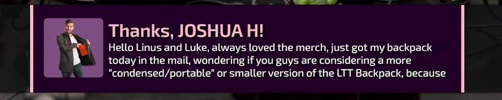 Hello Linus and Luke, always loved the merch, just got my backpack