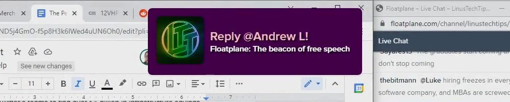 Hint: Use CTRL + F to search messages in this show, or use Whenplane's WAN Show Search tool to search for messages in all shows.