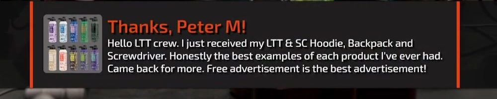 Hello LTT crew. I just received my LTT & SC Hoodie, Backpack and Screwdriver. Honestly the best examples of each product I've ever had. Came back for more. Free advertisement is the best advertisement!