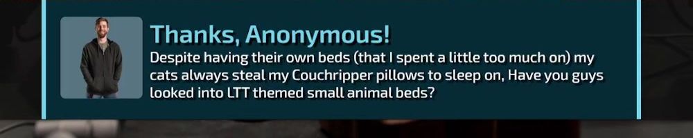 Despite having their own beds (that I spent a little too much on) my cats always steal my Couchripper pillows to sleep on, Have you guys looked into LTT themed small animal beds?