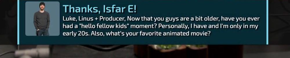 Linus, you have been in the industry for a while now. Have you considered all the kids who grew up watching your content are now entering the industry. Context, im a new debug engineer at AMD and