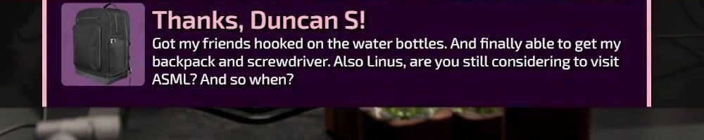backpack and screwdriver. Also Linus, are you still considering to visit