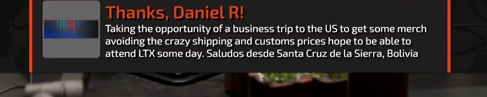Taking the opportunity of a business trip to the US to get some merch avoiding the crazy shipping and customs prices hope to be able to attend LTX some day. Saludos desde Santa Cruz de la Sierra, Bolivia