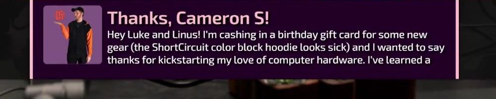 Hey Luke and Linus! I'm cashing in a birthday gift card for some new gear (the ShortCircuit color block hoodie looks sick) and I wanted to say thanks for kickstarting my love of computer hardware. I've learned a