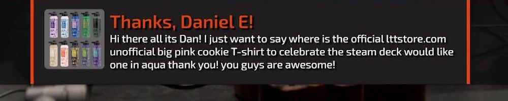 Hi there all its Dan! I just want to say where is the official lttstore.com unofficial big pink cookie T-shirt to celebrate the steam deck would like one in aqua thank you! you guys are awesome!
