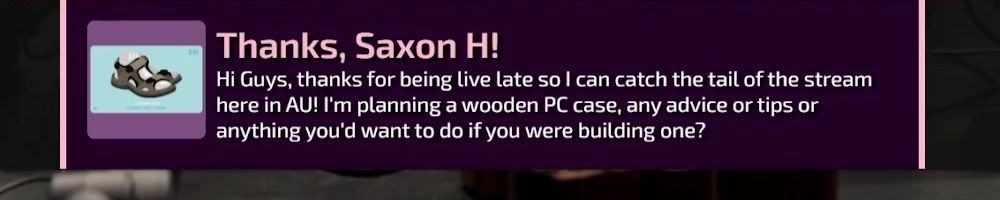 Hi Guys, thanks for being live late so I can catch the tail of the stream here in AU! I'm planning a wooden PC case, any advice or tips or anything you'd want to do if you were building one?
